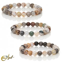 Made with natural bamboo agate beads, this elastic bracelet features a harmonious combination of organic colours, including cream, grey, lavender, and light pink tones.