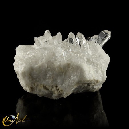 It is a transparent quartz druse which presents prominent points, pointing to various directions. These points and its transparency can be observed when we observe the quartz druse laterally.