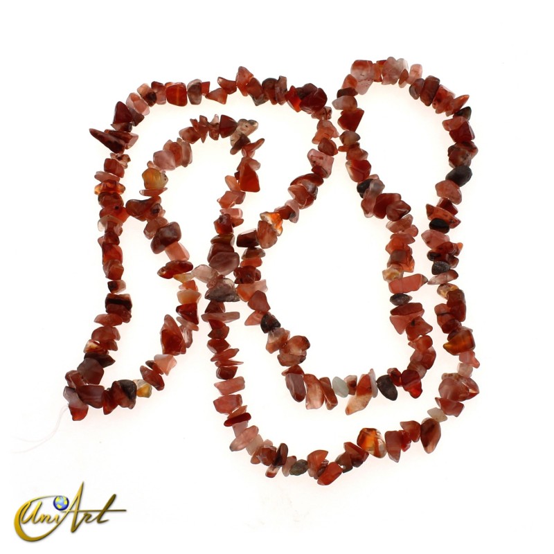 Son tiras de cerca de 80 cm de longitud con chips de carneola enfilados.