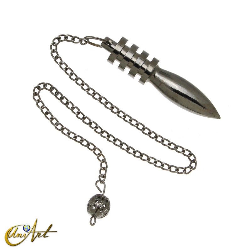 El péndulo Osiris Pilar Djed, realizado en metal, representa un amuleto muy utilizado en Egipto que brindaba a su portador longevidad, renovación, vitalidad y equilibrio. Por analogía con la espina dorsal de Osiris, también proporcionaba el fortalecimiento de la columna vertebral.